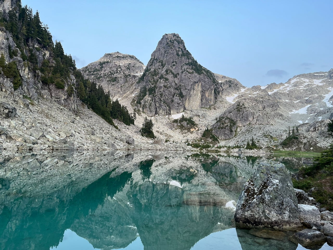 AllTrails labels the hike as Hard; I’d say it’s moderate with a hard part at the end where you have to scramble a bit over 3 sections of large rockslides. After being treated to all that beauty on the way, Watersprite Lake itself is quite the climax. What a gorgeous place. I don’t know how many wonderful shades of blue my eyes have been treated to since arriving in Canada, but this lake was a magnificent addition. It was so crystal clear that it had a gorgeous reflection, great material for some impressive photos.