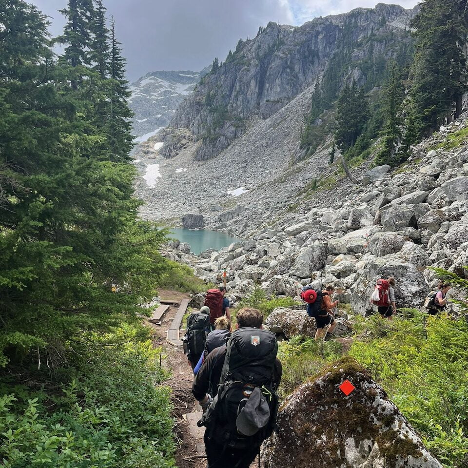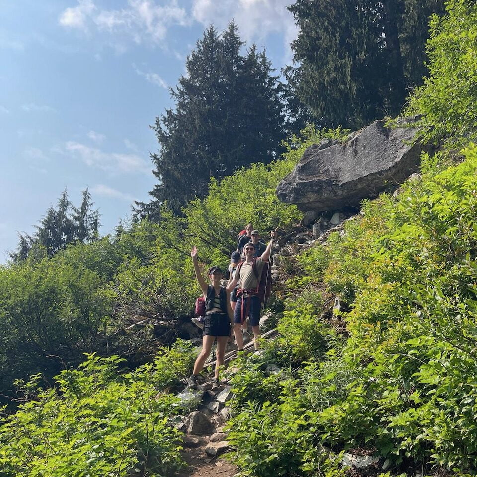 The next morning, some went for another swim in the lake, and we each made breakfast, spent a bit more time enjoying the hut with the group… Then cleared out everything and packed up all our stuff to make our way back to the cars. It took us about 3 hours to venture down. The views were fantastic again, but with barely any sleep, the hike was a bit more challenging in terms of energy. The hike required a lot of attention and strong knees. Thankfully, the hardest part was right at the beginning, so after we had climbed and bouldered our way through the big rocky part, the forest paths were a lot more manageable.