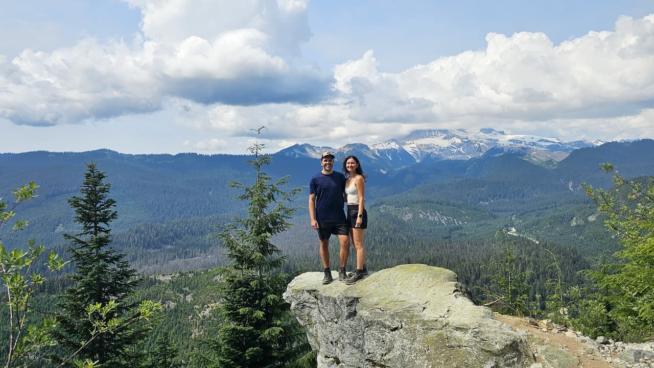 We bought a car a few months ago and chose a vehicle that would allow us to go on adventures like these. A bit older, some scratches so we’re not too worried about scratching it more, 4-wheel drive, and enough space to transport stuff like tents, paddle boards… Or in this case, a bunch of backpacks from people driving with us. Given that our car would be suitable for the bumpy drive to the trailhead, we offered to drive, so we picked up a few members of the birthday crew and made our way up to Squamish.