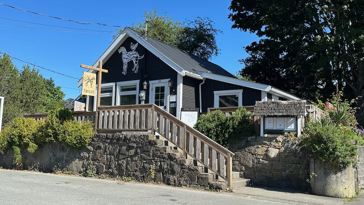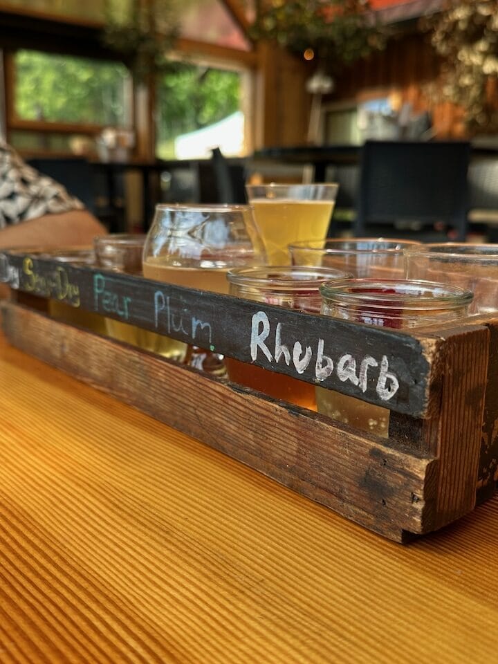 From the car rental, it’s a 4-minute drive to the Salt Spring Wild Cider House, an artisinal cidery that only sells to private local liquor stores throughout BC. They have a gorgeous spot–it’s a barn building with a gorgeous patio and a wonderful view. We ordered a full flight of ciders and shared it, along with a charcuterie board. The ciders were really nice and it did make me regret we didn’t have a lot of luggage space. Would have gladly purchased a bottle… Guess I’ll just have to go back some time.