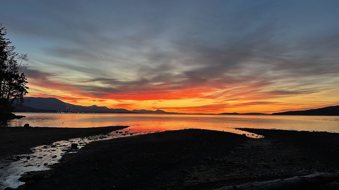We went for a unique Airbnb experience for our stay: we found a yurt on the north west side of the island. It had everything: a king size bed, a well equipped kitchenette, a barbeque on the patio, and a bathroom and shower behind the bedroom. It even had air conditioning, which came in handy when the temperature climbed above 25 degrees.🔗 OceanView Lodge – The YurtBefore driving to our Airbnb, we paid a visit to the local grocery store and got ourselves a nice piece of trout, a bunch of Spot Prawns–in season only briefly and they were super fresh!–and some ingredients for a simple salad. Tom cooked dinner on the barbecue while two deer munched away at some leaves right behind him. Amazing.Watch the sunset on Bader’s Beach