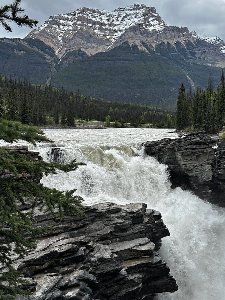 “The 23-metre Athabasca Falls is not very high by Canadian Rockies standards, but the size of the river makes it one of the most powerful falls to be found in the mountain national parks.” (Parks Canada)