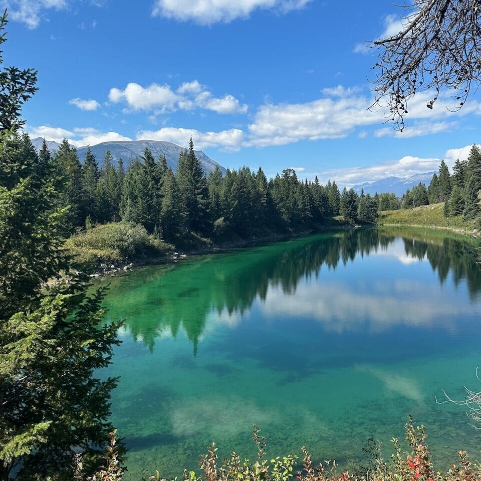 If you’re starting in Jasper, this would be one of the first things you pass. A very accessible and easy start of the long drive, the Valley of the Five Lakes is a family-friendly hike, looping along 5 beautiful lakes. They’re relatively small, the walk doesn’t have much elevation, and yet you can enjoy and marvel at the gorgeous shades of blue and emerald 💚
