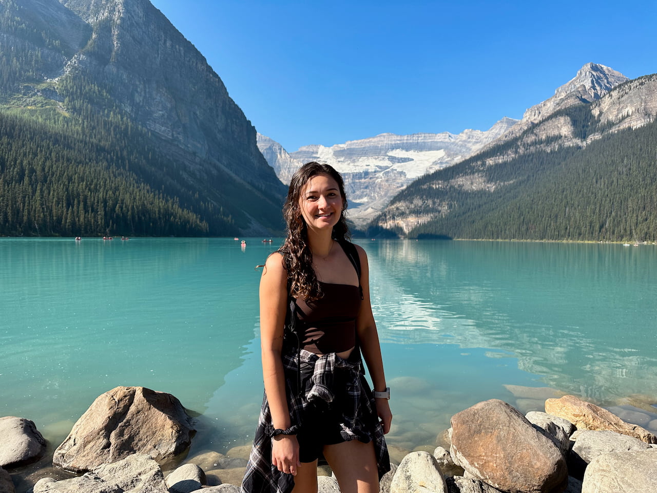 On the way back, we still had some time to take the shuttle bus to Moraine Lake as well. I thought this lake was even more beautiful – it just has an incredible backdrop. Initially, we thought we’d have to choose between Lake Louise and Moraine Lake, so we were all so glad we got to do both on the same day thanks to the shuttle bus (and good timing finishing our hike).
