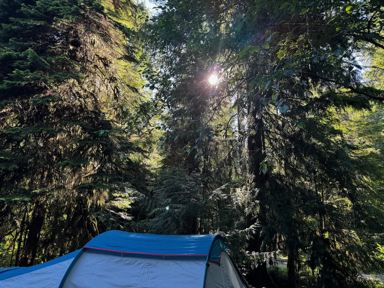 In July, we went camping with Anienke and Smit on Vancouver Island. For all of us, it was our first time sleeping in a tent in Canada. We had so much fun and had amazing weather. We camped in Strathcona National Park for a night and went to find Myra Falls there, a beautiful place used as a filming location in the Apple tv show “See”. What an incredible place. The water was ice cold and super refreshing! The next day, it was time to pack up and move to another camp site a little south of Port Alberni. So lovely driving around and getting to know the island a little bit better. The second campground was a bit smaller, but still very nice and located conveniently by a river, so we hung out there to cool off.